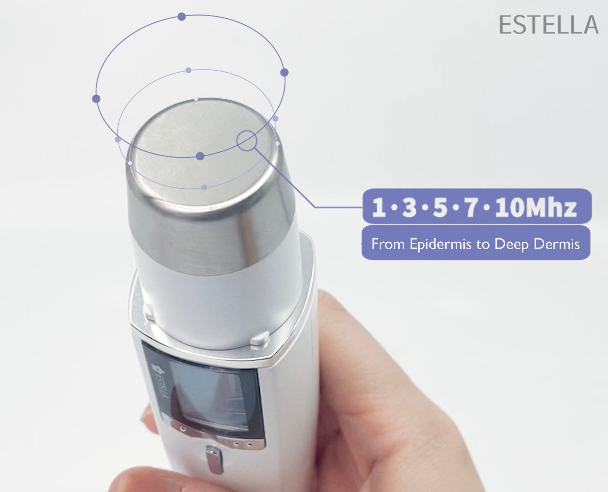- World's first 5 ultrasonic [1, 3, 5, 7, 10MHz] frequency ultrasonic portable skincare device.